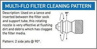 Our Rotary Jet Nozzle utilizes a free spinning rotor with either 2 or 4 offset jets that spin the rotor to create a "wall" of water with 360° of coverage inside a pipe. This makes it the ideal tool for finishing or polishing a job by removing debris that might have been missed due to the spaces between jets on a fixed orifice nozzle. It's perfect for applications that require a thorough rinsing action, but not necessarily a heavy blasting action.